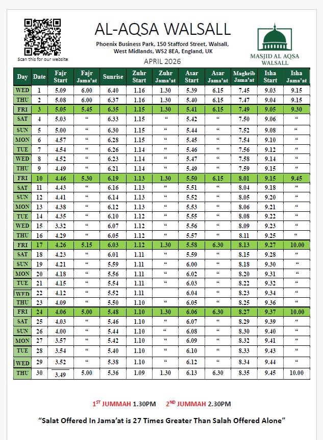 Download pdf APRIL 2026 TIMETABLE TO PRINT